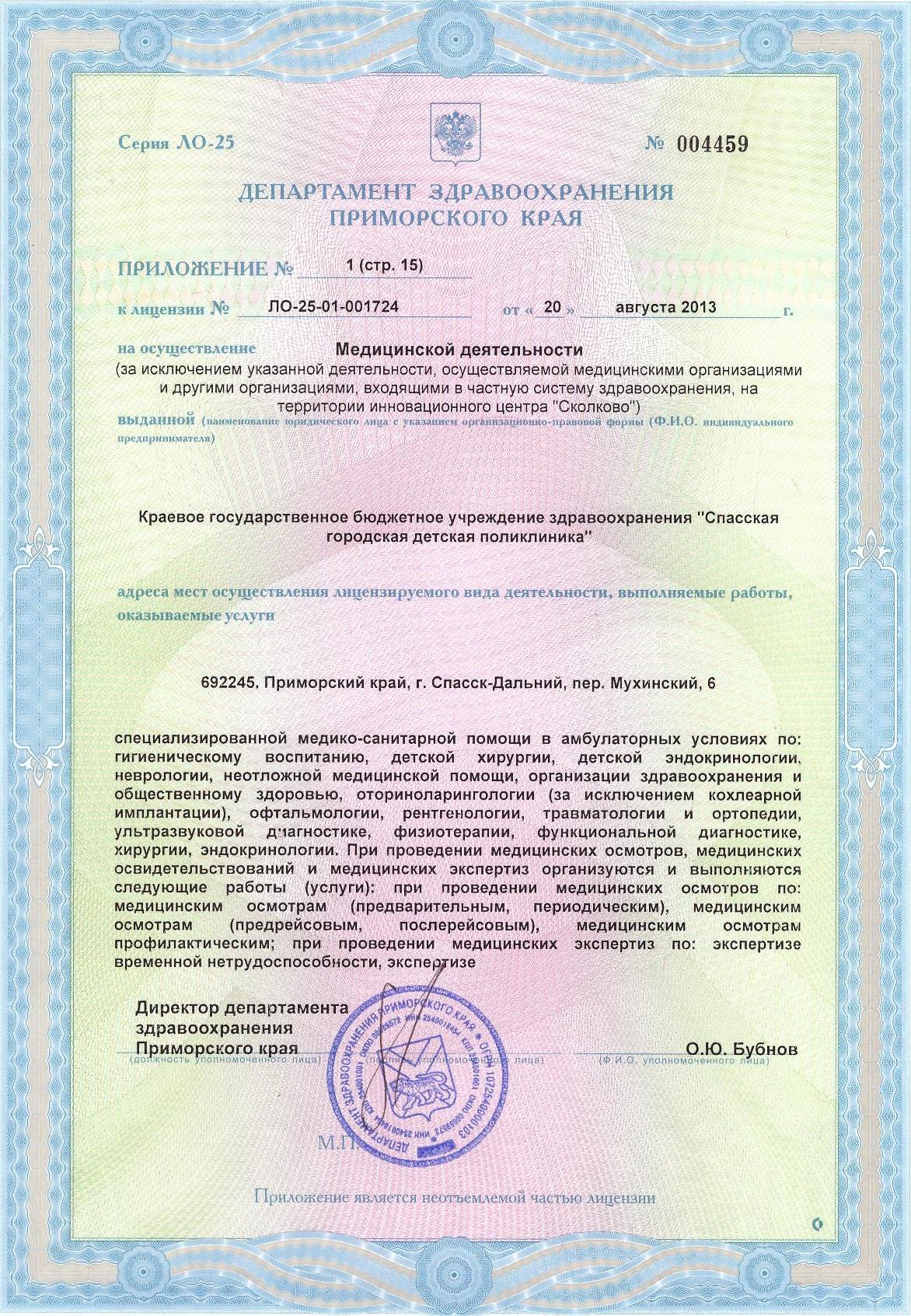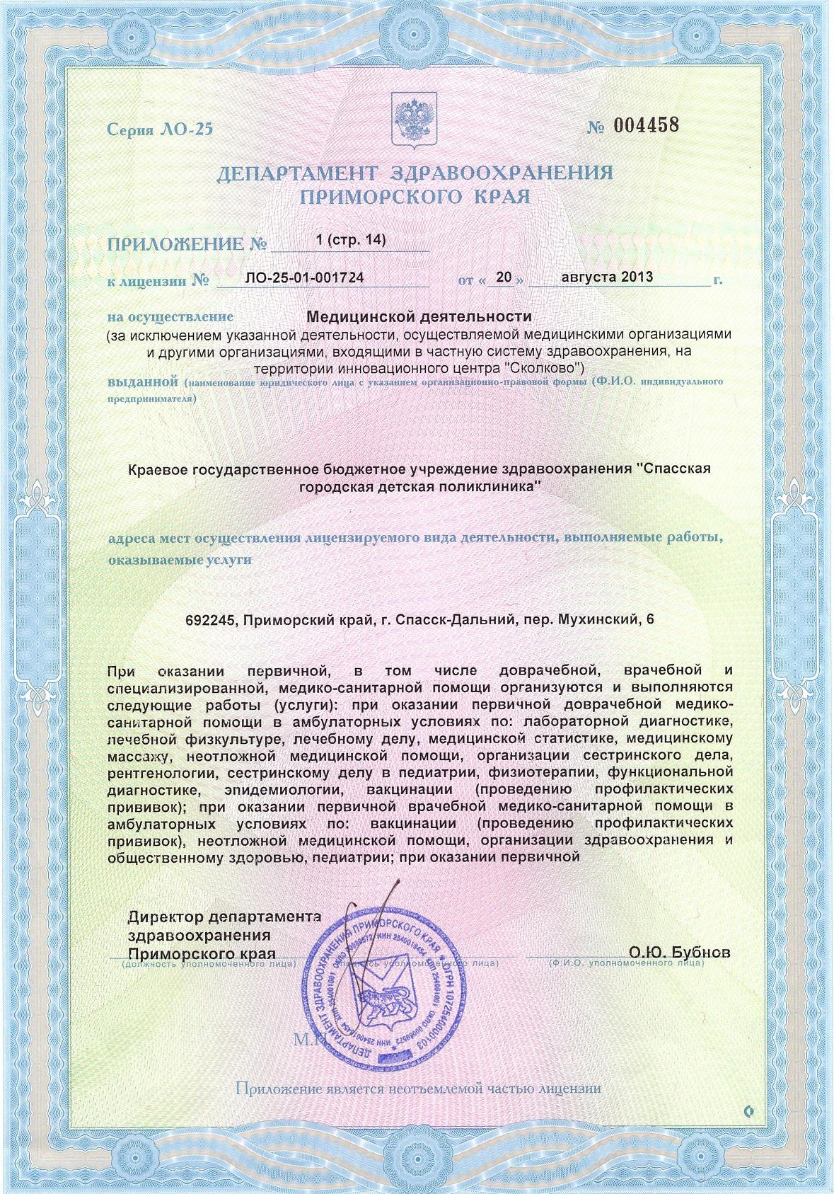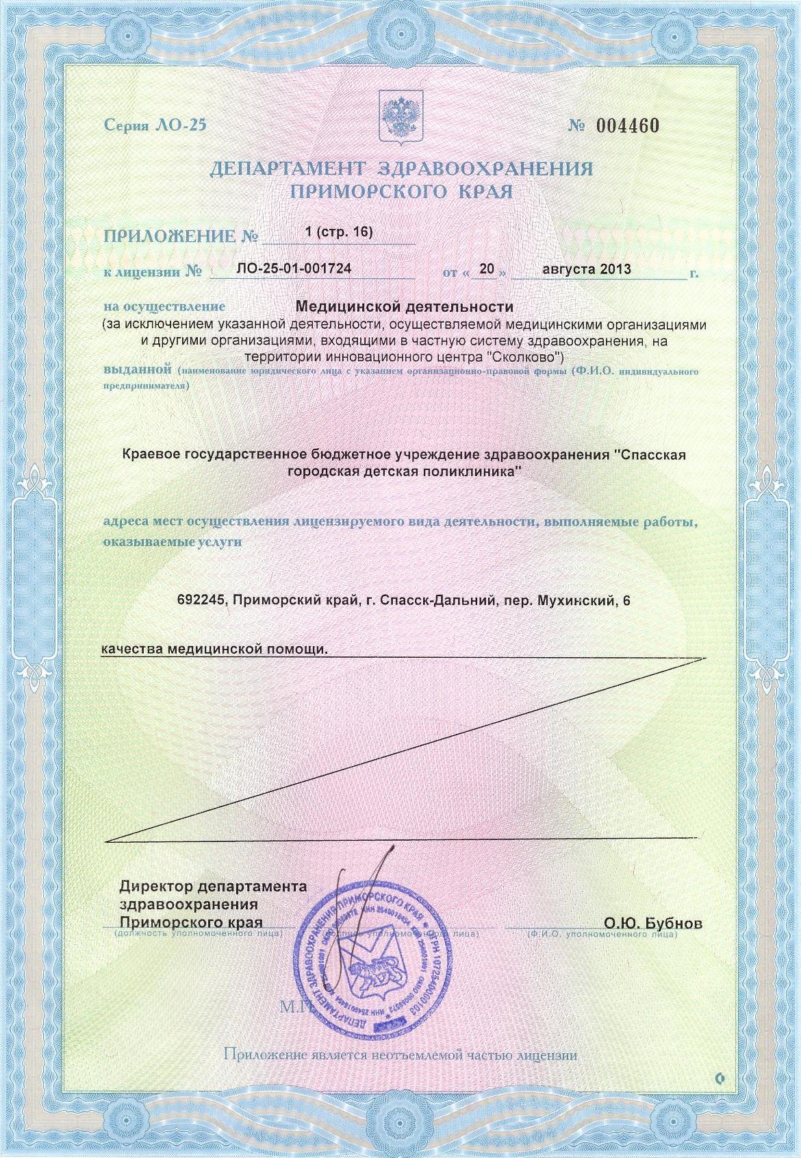 Приложение к лицензии №: ЛО-25-01-001724